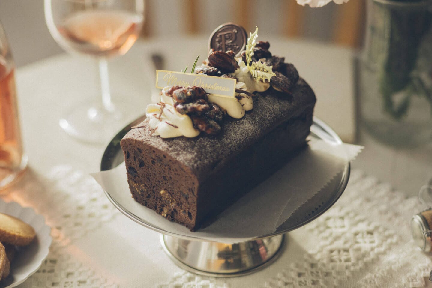 大東カカオの上質なチョコレートを贅沢に使い、米粉と合わせて仕立てた生地の中に、ラム酒に漬け込んだいちじく・デーツ・ブルーベリー・レーズンを入れ、仕上げには生クリームとキャラメリゼしたナッツ、削りチョコ、そしてパレードの“P”をかたどったチョコを添えた、重厚感のなかにやさしい口どけを感じられる、華やかな果実の香りとチョコレートの深いコクが重なり合うガトーショコラ。 ちょっぴり大人な、そしてグルテンフリーや無添加素材にこだわった、大切な人と囲むクリスマスにふさわしい一本です。